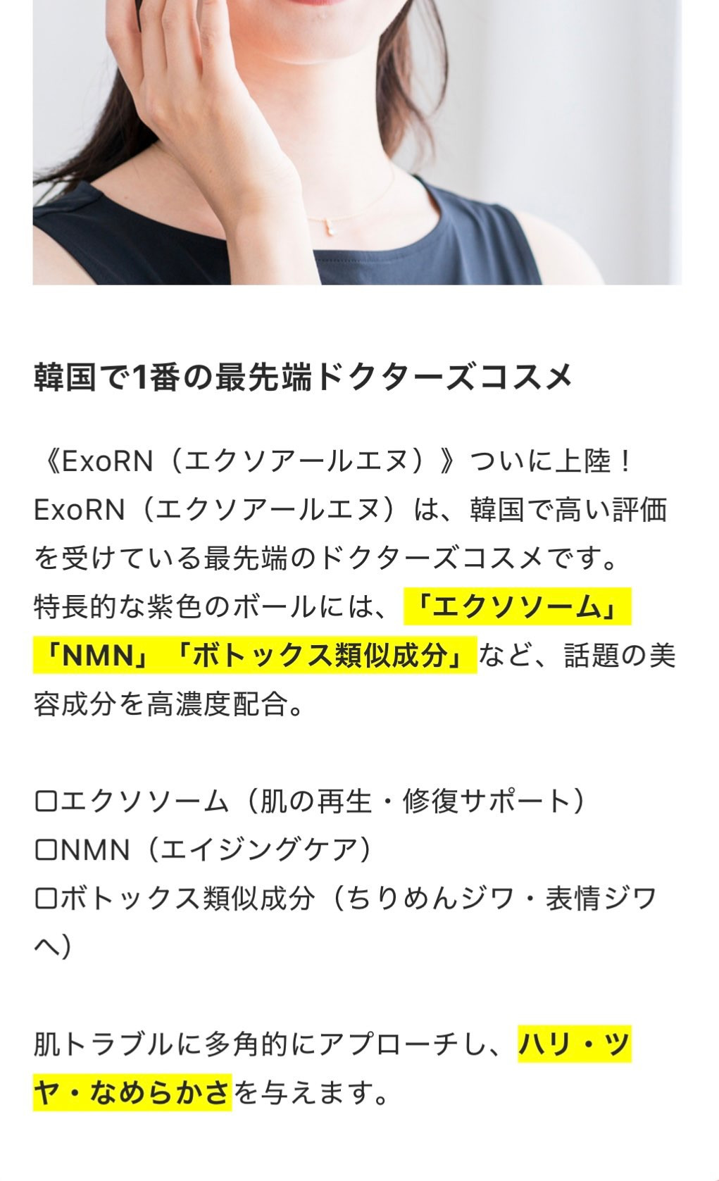 ExoRN(エクソアールエヌ)は、韓国で高い評価を受けている最先端のドクターズコスメです。