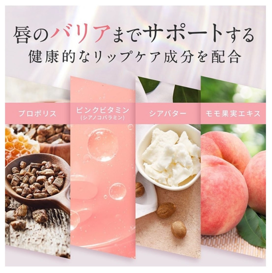 「ピンクビタミン」と「プロポリス(整肌)」を配合し、唇の本来の力を目覚めさせる!
